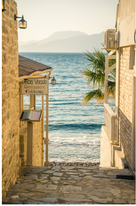해변을 따라 다양한 카페들이 늘어서 있어, 바다를 감상하며 커피를 즐길 수 있습니다.